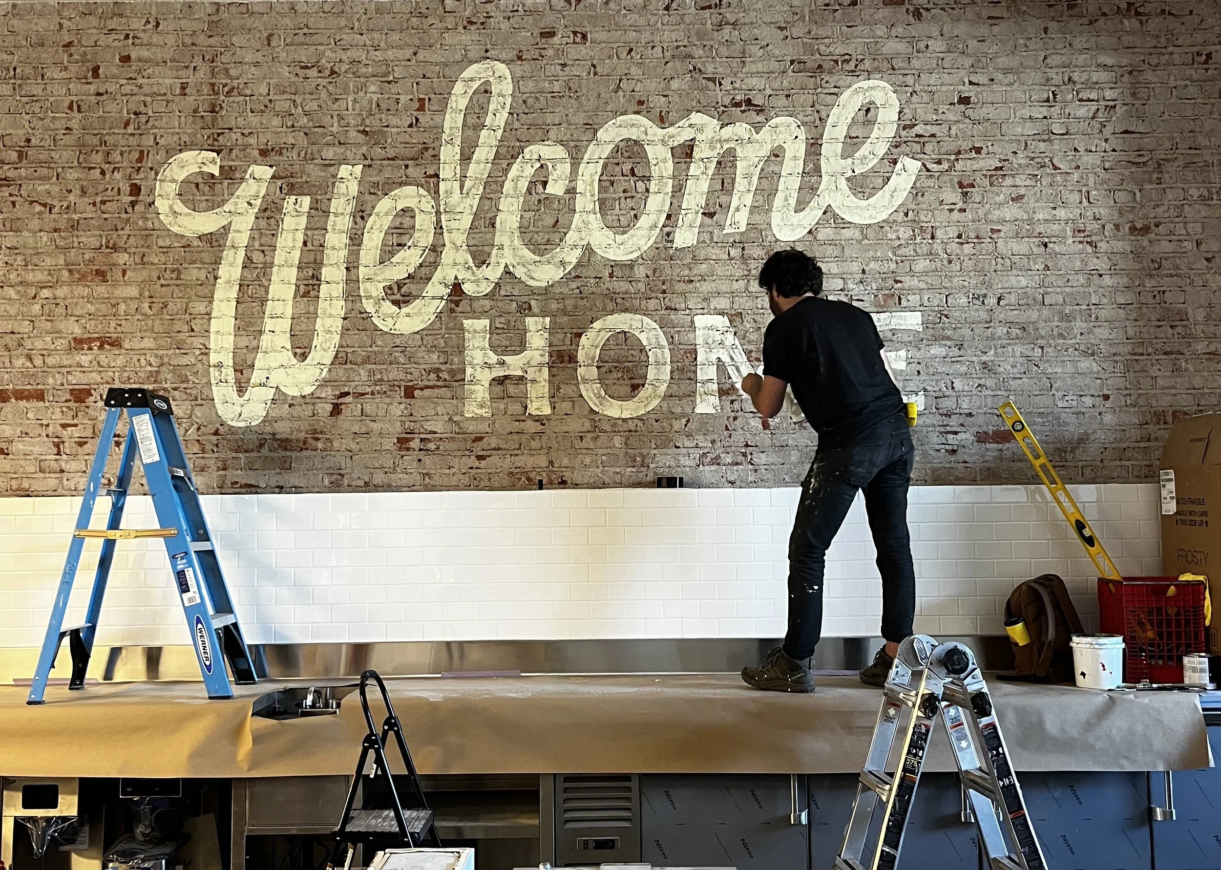 HomeState I Atwater I Faux-Aged Sign on Brick